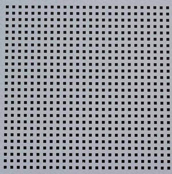 冲孔天花板、表面覆pvc膜,背面为铝箔膜。花色多样,孔型可根据需要选择。适合学校、会议室、酒店、商城等人流量大地区。
