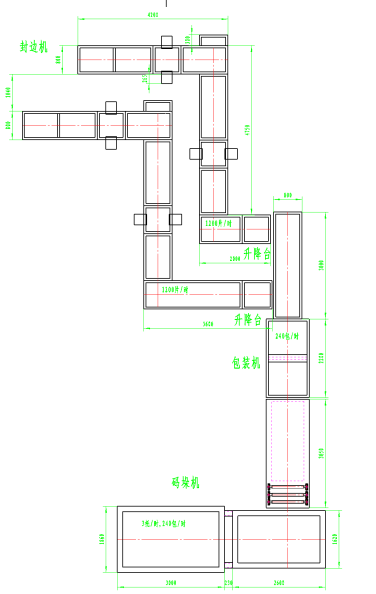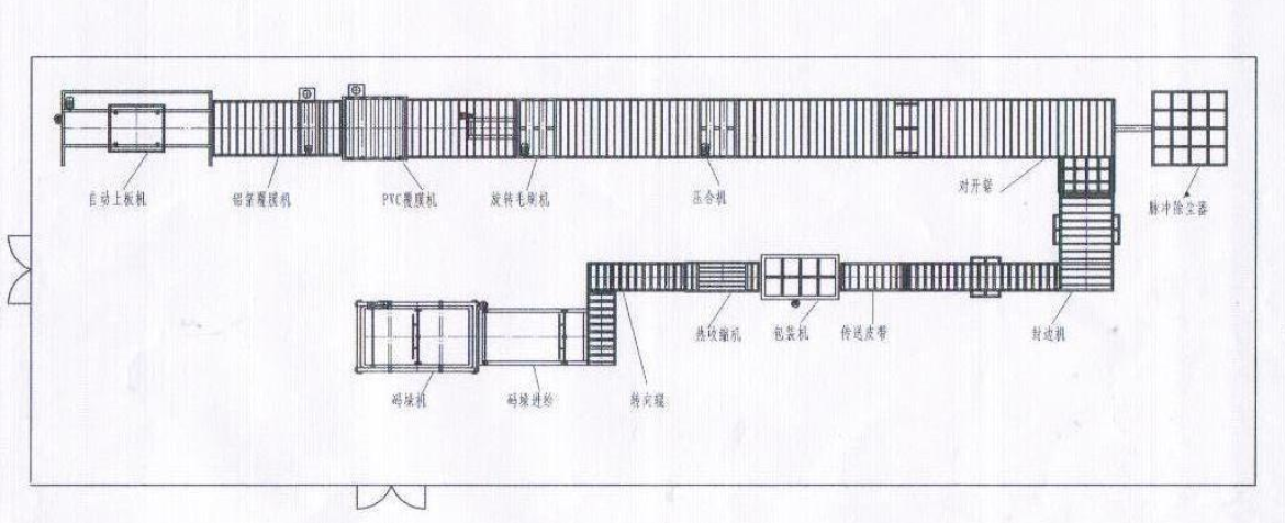 类型二 封边机、自动包装机相连,可根据需要选择是否再与自动码垛机相连